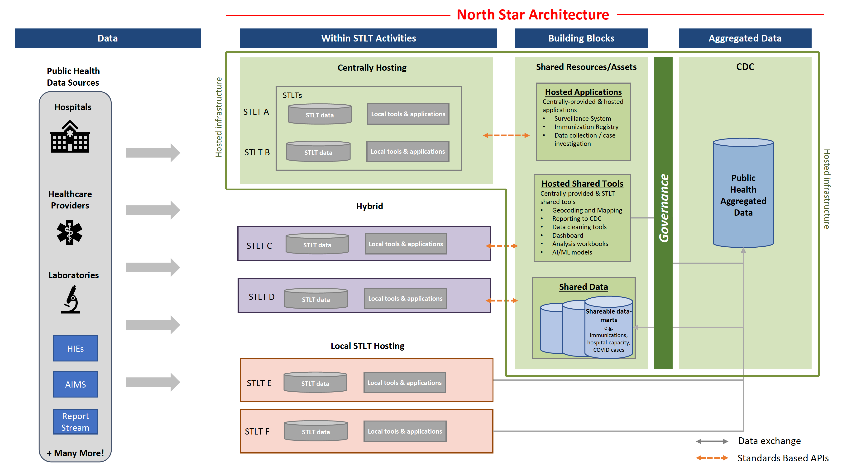 To explain the North star Architecture one should first understand the Office of the National Coordinator for Health Information Technology (ONC) vision that the US health system will, in its future state, consist of three EHR archetypes: Local State, Tribal, Local, and Territorial (STLT) Hosted, Hybrid and Centrally Hosted EHRs.